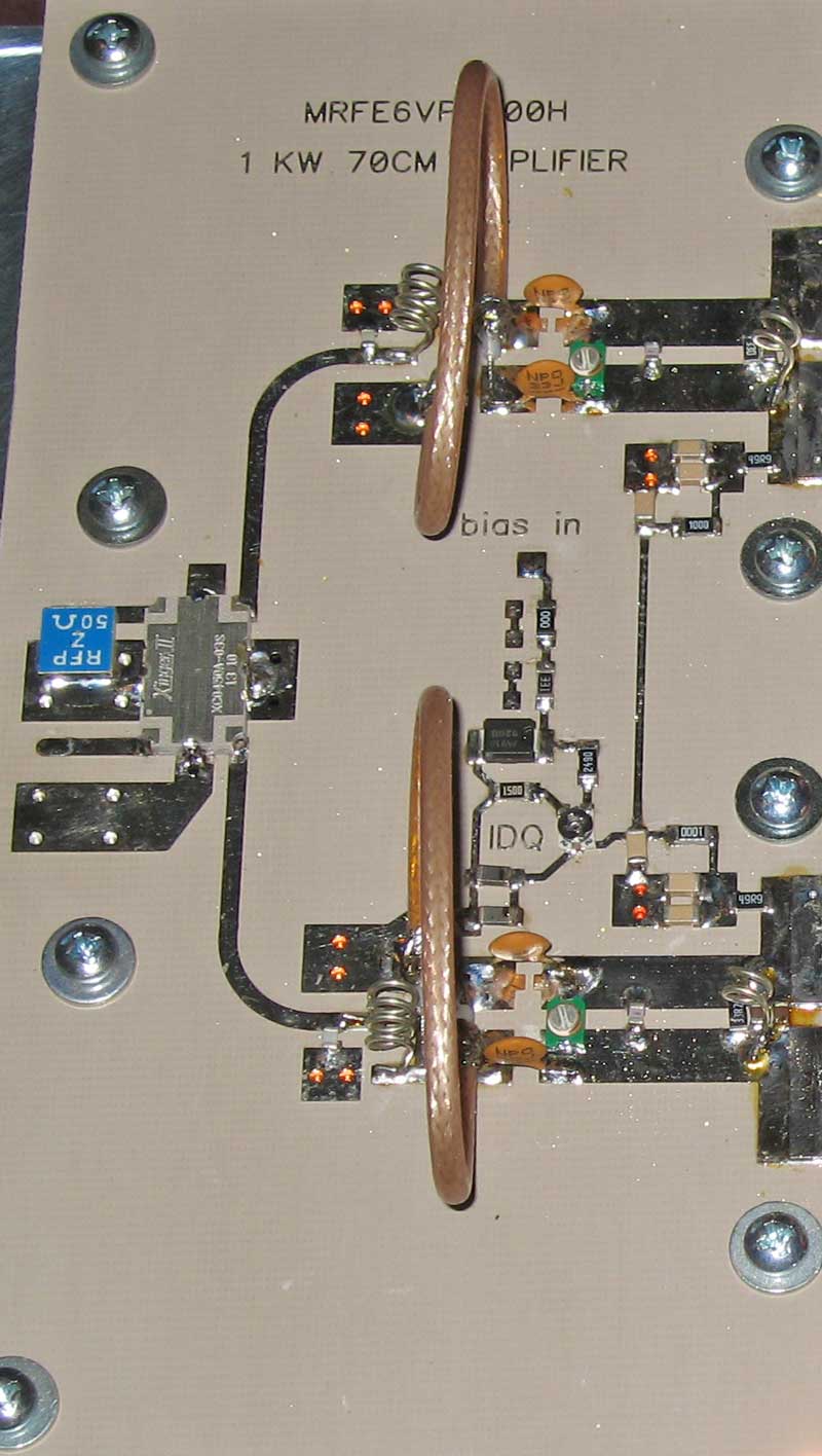 Turn on the bias and note the idling current drawn from the 50v supply. Adjust IDQ for 2 amps. Note: the current drawn by the bias supply (usually12v) is not what you are measuring here...you must measure the idling current (IDQ) the LDMOS draws from the 50v supply.