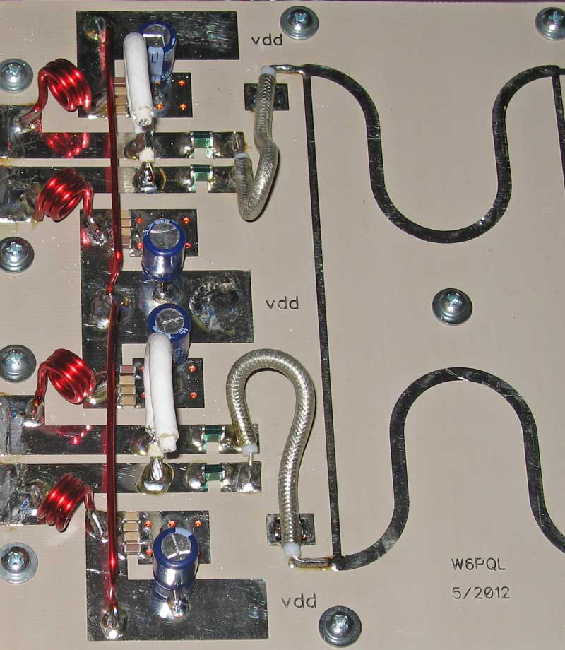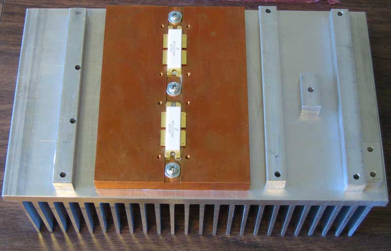 Using a bit of liquid flux, solder the LDMOS tabs to the board.