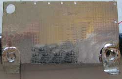 spot-solder the crystal can to the back foil on the controller board as shown.