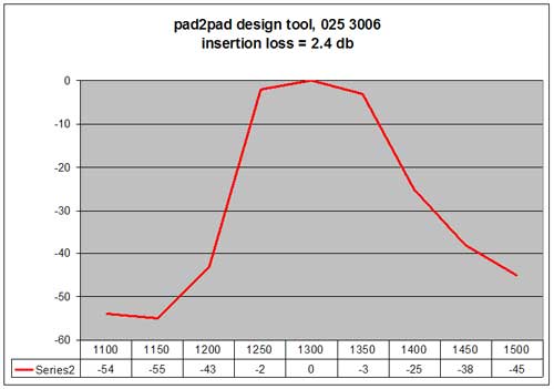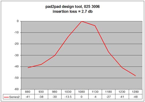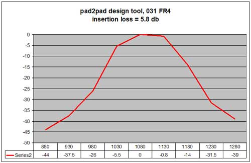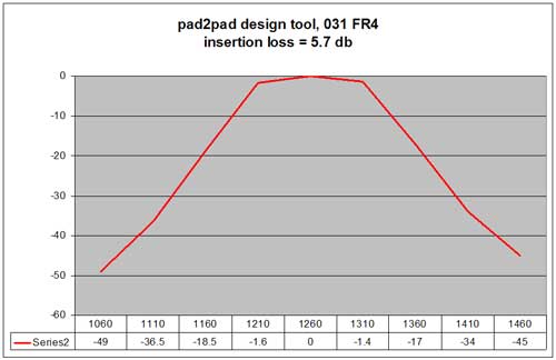 with broader skirts than the same filter on low-loss material like Ro3006.