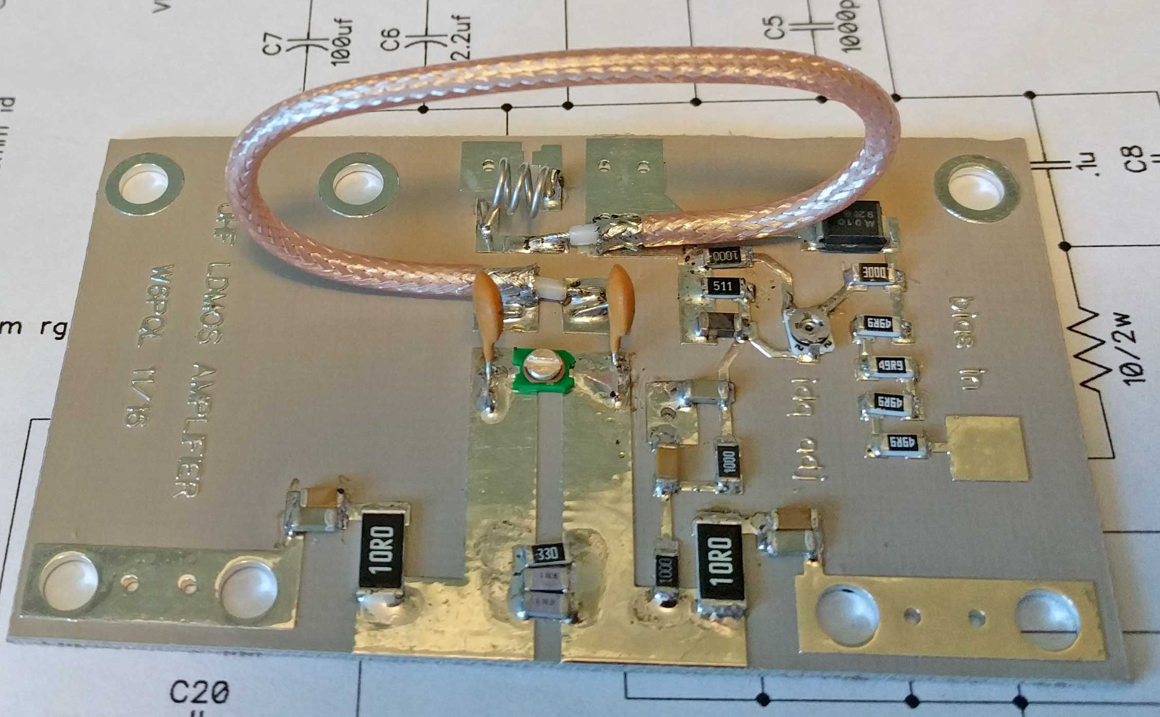 Additional ground foil was added to the board to make it easier to experiment with for possible future enhancements or other frequency ranges